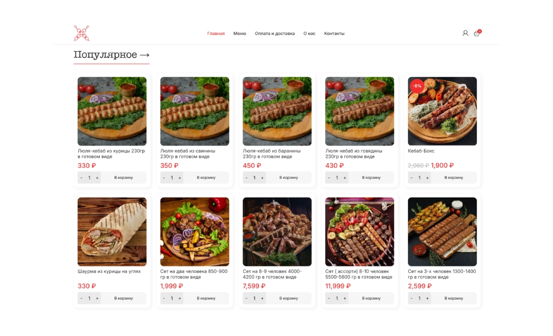 - Разработали сайт в формате маркетплейса в соответствии с требованиями компании. Он включает в себя информацию о меню, ценах и контактную информацию. Также была добавлена функция заказа еды онлайн с добавлением в корзину.